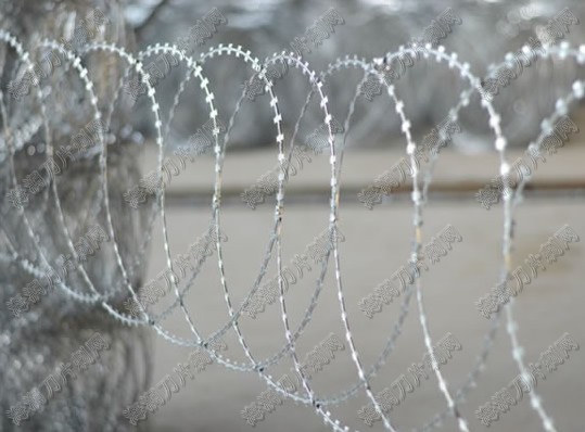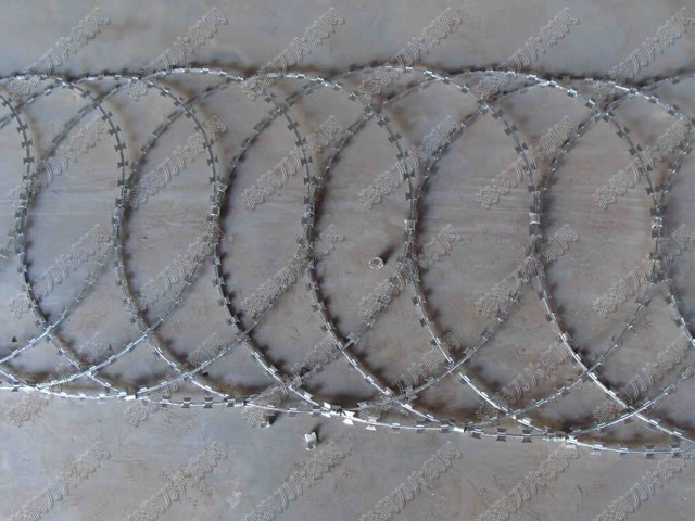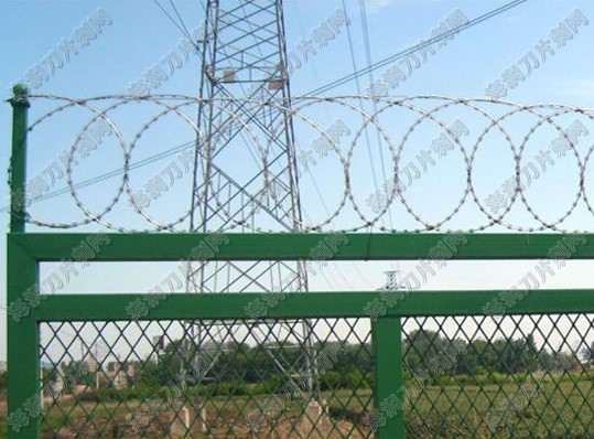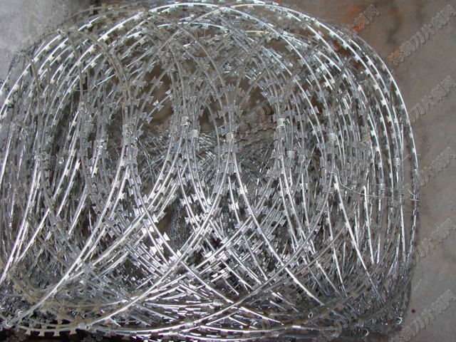 平板式刀片刺网是刀片刺网的一种新的应用方式,它是将单圈螺旋刀片刺网平压成板状,或将两件单圈刺网压平后交叉相错,用卡扣进行固定,可与平面焊接的刀片刺网搭配使用,构成立体的刀片防护墙。适用于小区、仓库、畜牧厂、农场、矿山、监狱、国防重地等。